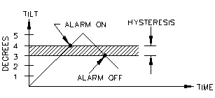 The standard IRIS firmware also allows the user to set the hysteresis of the control thresholds. The hysteresis is used as follows: After an H3 output pin is set high, it is not set to low again until the tilt reading has reached a level that is below the threshold by an amount equal to the hysteresis (see diagram).