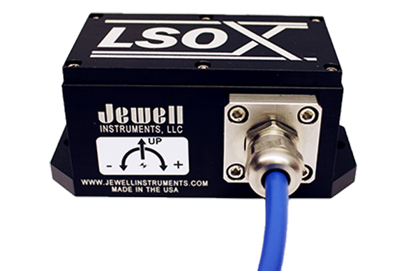 The Jewell LSOX Single-Axis Analog Inclinometer series are a rugged, high precision tilt sensor designed for peak performance in extreme conditions. These RoHS compliant sensors feature a fluid damped mechanism to deliver superior noise rejection in high shock and vibration environments as well as excellent output stability. Units are available with a 6-pin connector, pin-terminals, or flying leads and in three different output versions (D, L, & S). LSOX-S is available with CE Certification.