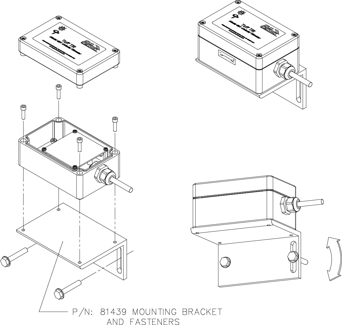 The following drawings illustrate installation techniques for the Model 801 Tuff Tilt Uniaxial Tiltmeter, the Model 904-T Clinometer Pak, and the Model MD900-T Digital Clinometer.