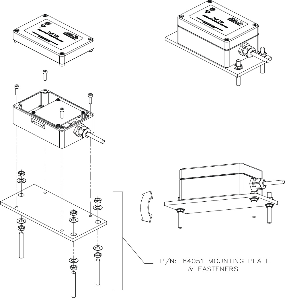 Surface mount tiltmeters are typically attached to the measurement surface by mounting studs (threaded rods) fastened or anchored into the surface. Three-point mounting is best because it prevents bending and torsion that can lead to unstable readings. Single-stud (monopod) mounting is more prone to drift and disturbance. It is not recommended for long-term applications.